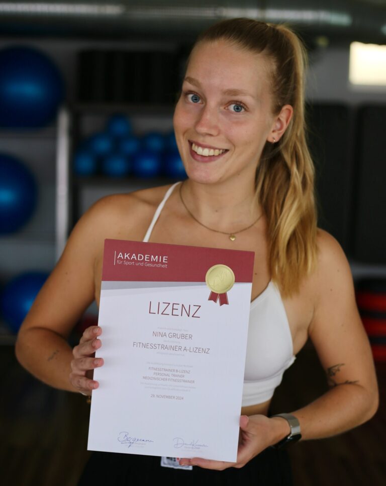 - Zertifizierte Fitnesstrainierin (A-Lizenz)